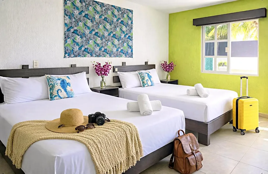 Located approximately a 10-minute drive from the Nuestra Señora del Carmen Catholic Church, which is considered to be a sacred place of worship, the 45 m² Bright & Airy Family Suite 2 Full Beds Walk To Beach Kitchen Ac Wifi Great Value 8A Playa del Carmen offers luggage storage for guests' convenience.